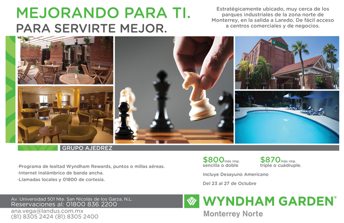 El Hotel Wyndham Garden promociona una tarifa especial para los participantes del Campeonato Estatal Abierto de Nuevo León.
