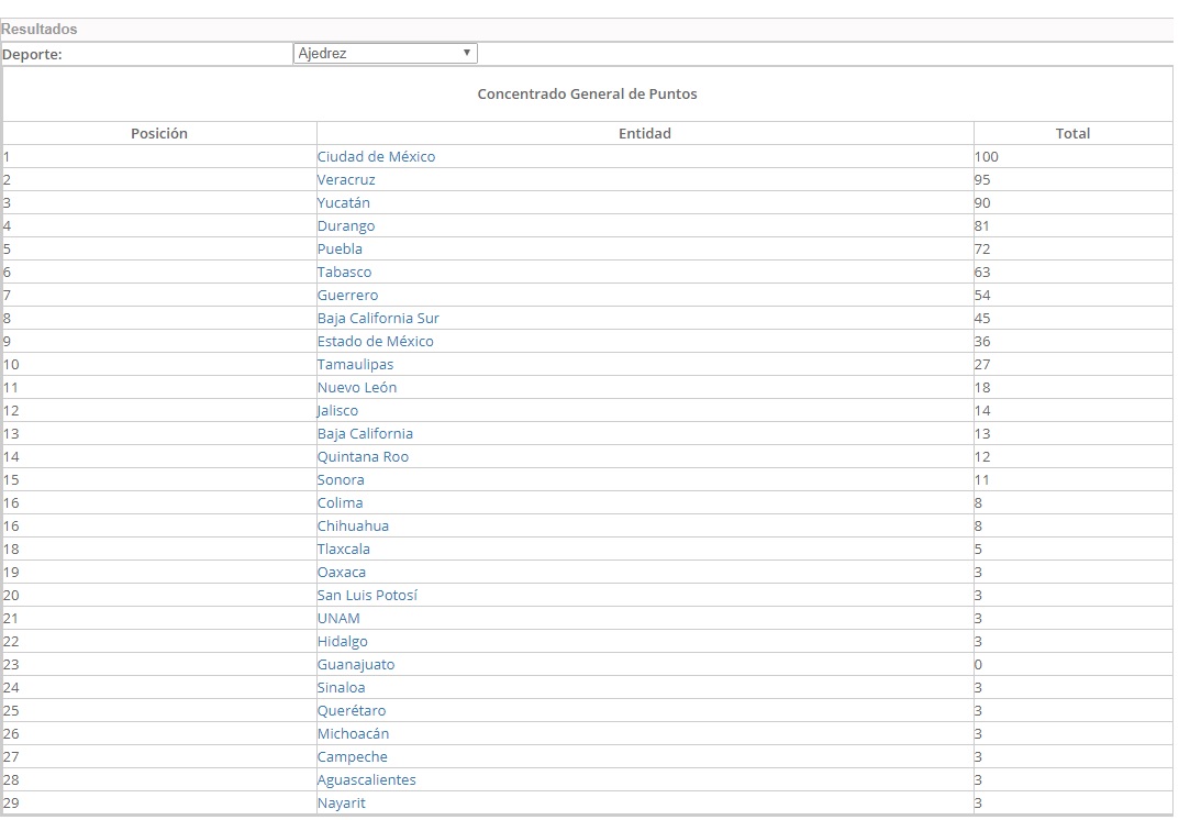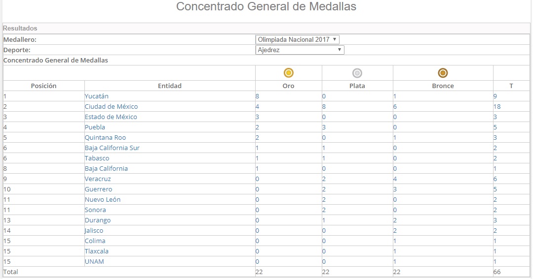 Anexamos el medallero y la tabla de puntos del evento.