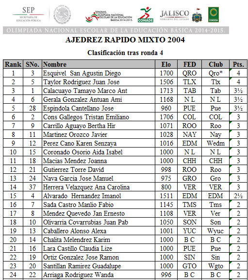 Concluyó la Olimpiada Nacional Escolar donde los resultados más destacados fueron los 5tos sitios de Aida Coronado Osorio, Kevin Herrera Guzmán y Antuán Gerala González en individual a 1 hora los dos primeros y en el rápido Mixto Antuán. Los equipos se ubicaron en el 8vo lugar con 1 match ganado, 3 empatados y 1 perdido el de Primaria menor, mientras que el de primaria mayor se ubicó en la 13ra posición con 3 matches ganados y 2 perdidos.