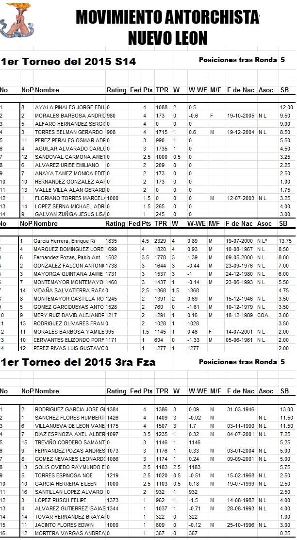 El torneo fluyó sin pormenores hasta el descanso, entre la 3ra y 4ta ronda donde se vislumbraban ya los favoritos de todas las categorías, en segunda se enfrentarían Pablo Fernández Pozas Vs CM Enrique García Herrera, en 3ra José Guadalupe Rodríguez Vs Humberto y en Sub-14 Andrick Morales Barbosa y Jorge Ayala Pinales. Tras juegos cargados con una tremenda dosis de intensidad en cada lance de los trebejos, el fin de la ronda vió salir como líderes al CM Enrique García, Guadalupe Rodríguez y Andrick Morales, el sistema de desempate (Solkoff, Sonnenborn y Acumulativo) hizo que aún no estuviera nada definido y nos fuímos a la 5ta ronda.