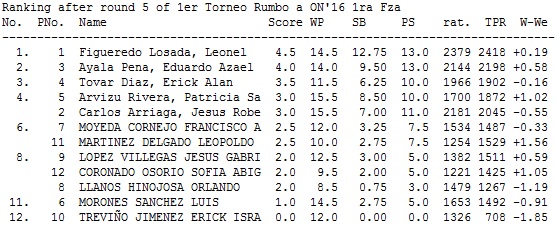 Resultados del 1er Torneo Rumbo a la Olimpiada Nacional 2016