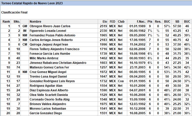 Una despliegue de poder desde la primer ronda por parte del Gran Maestro Juan Carlos Obregón Rivero, para acumular un total de 9 puntos en 9 rondas y obtener el Campeonato Rápido del Estado.