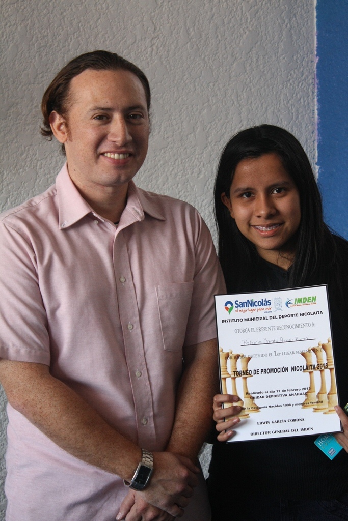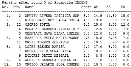 La Campeona con 5/5 pts. Patricia Sarahi Arvizu Rivera.