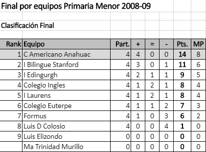 Posiciones finales y tabla.
