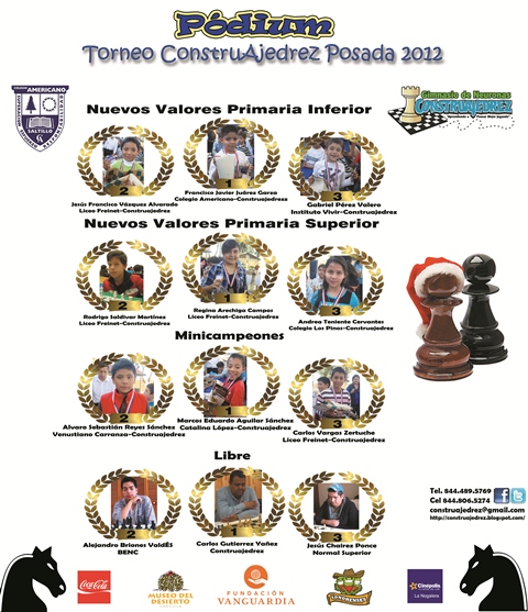 Una vez que el día de ayer concluyo la segunda etapa del Torneo Construajedrez Posada  2012 con una asistencia record para nosotros, de 101 participantes,me permito enviarte el podium para pedirte puedas publicarlo en tu portal