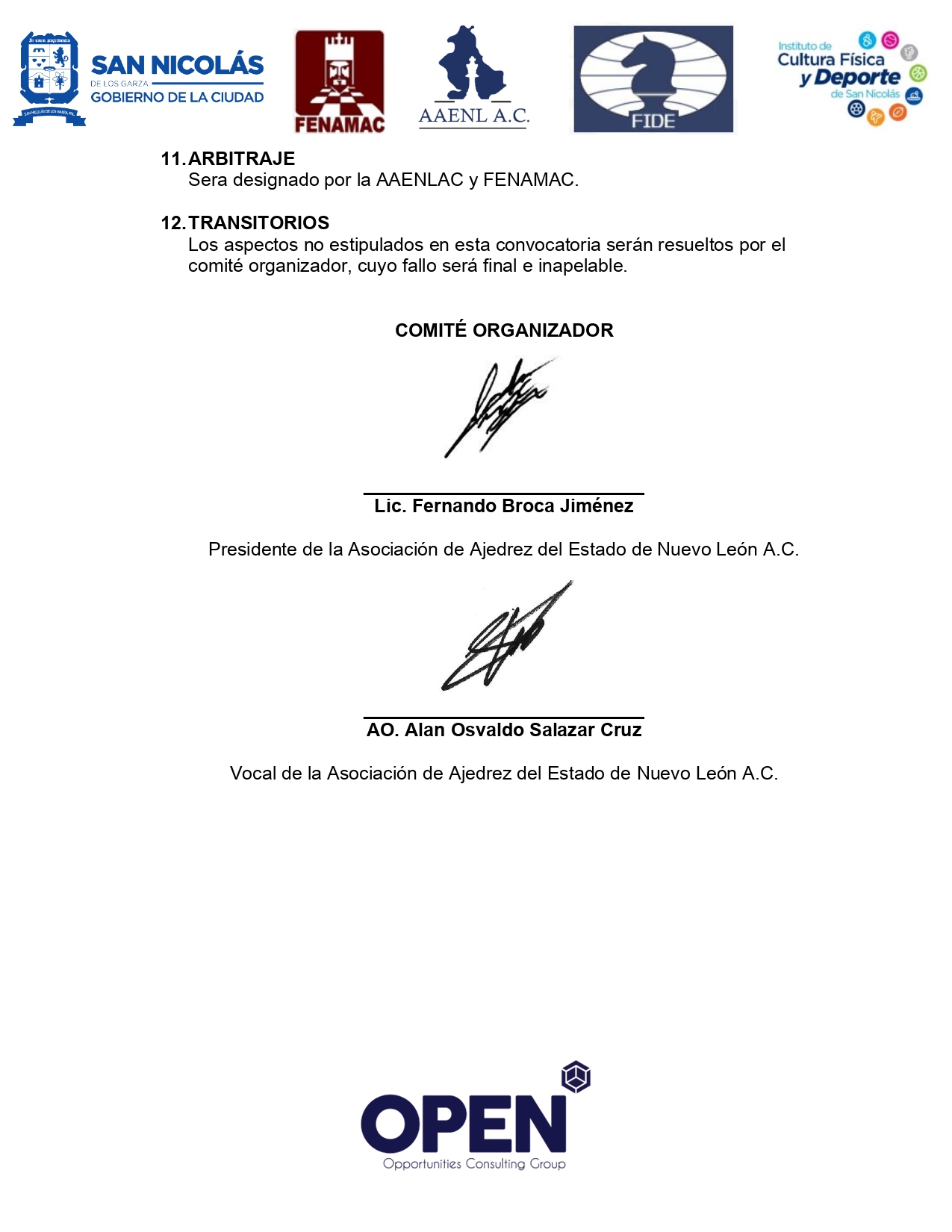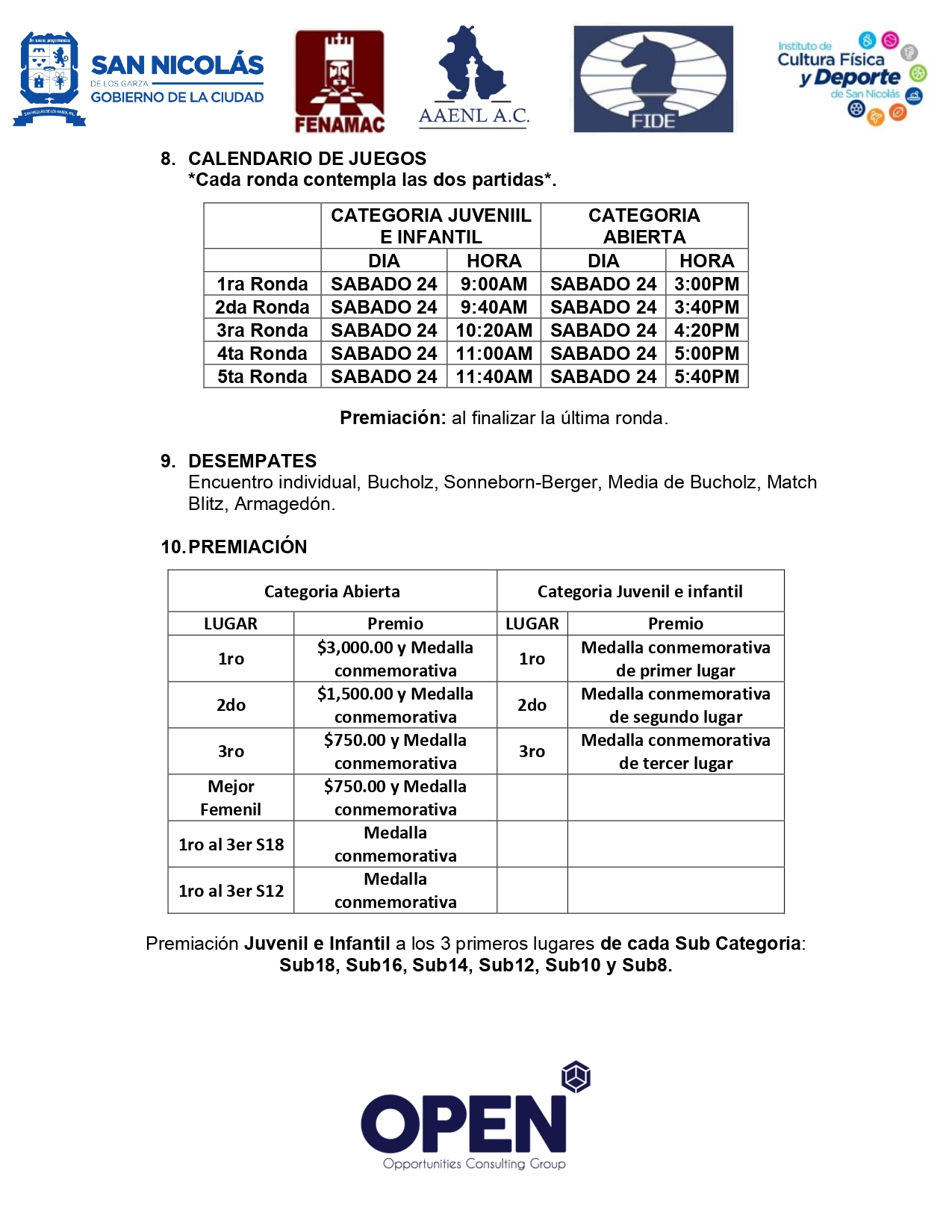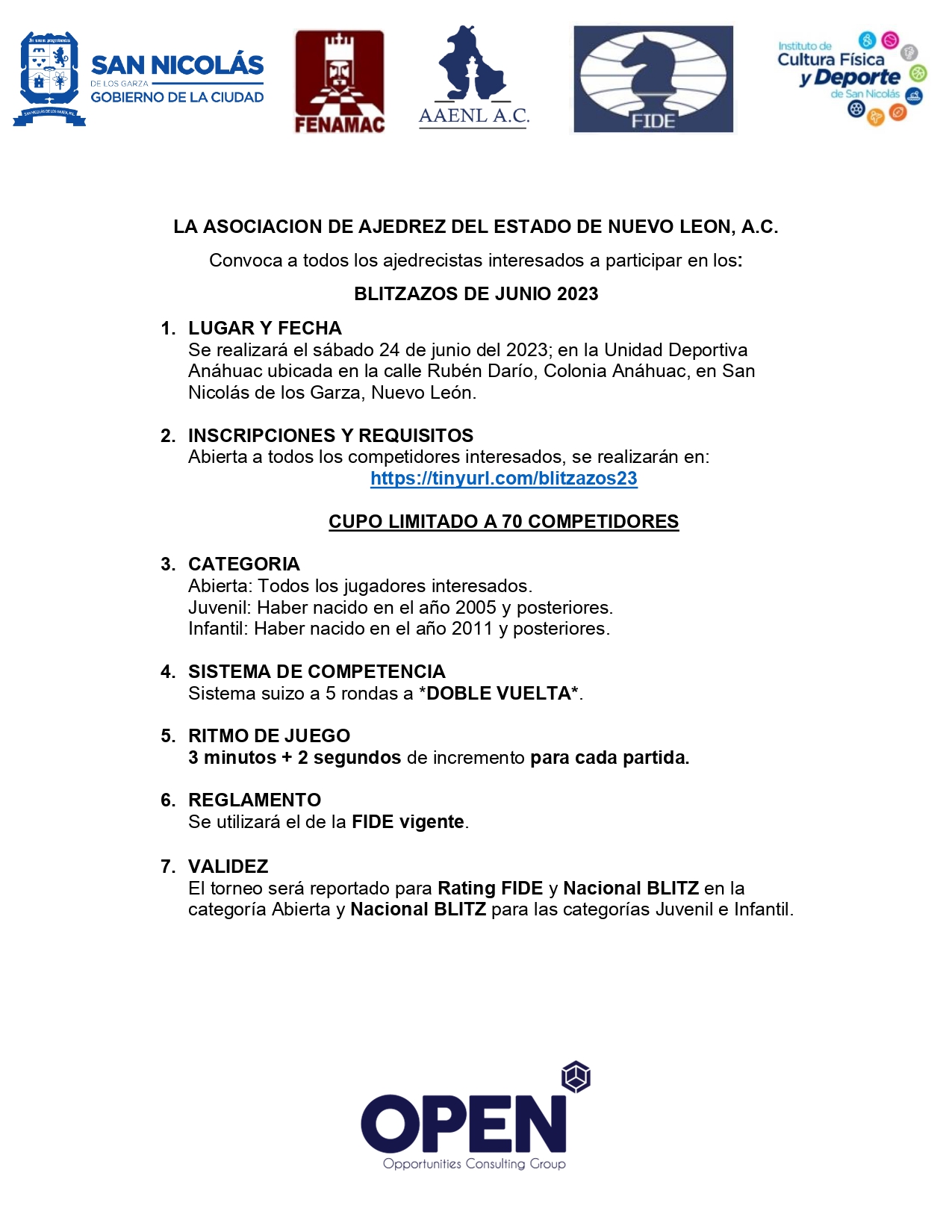 categoría Abierta y Nacional BLITZ para las categorías Juvenil e Infantil.