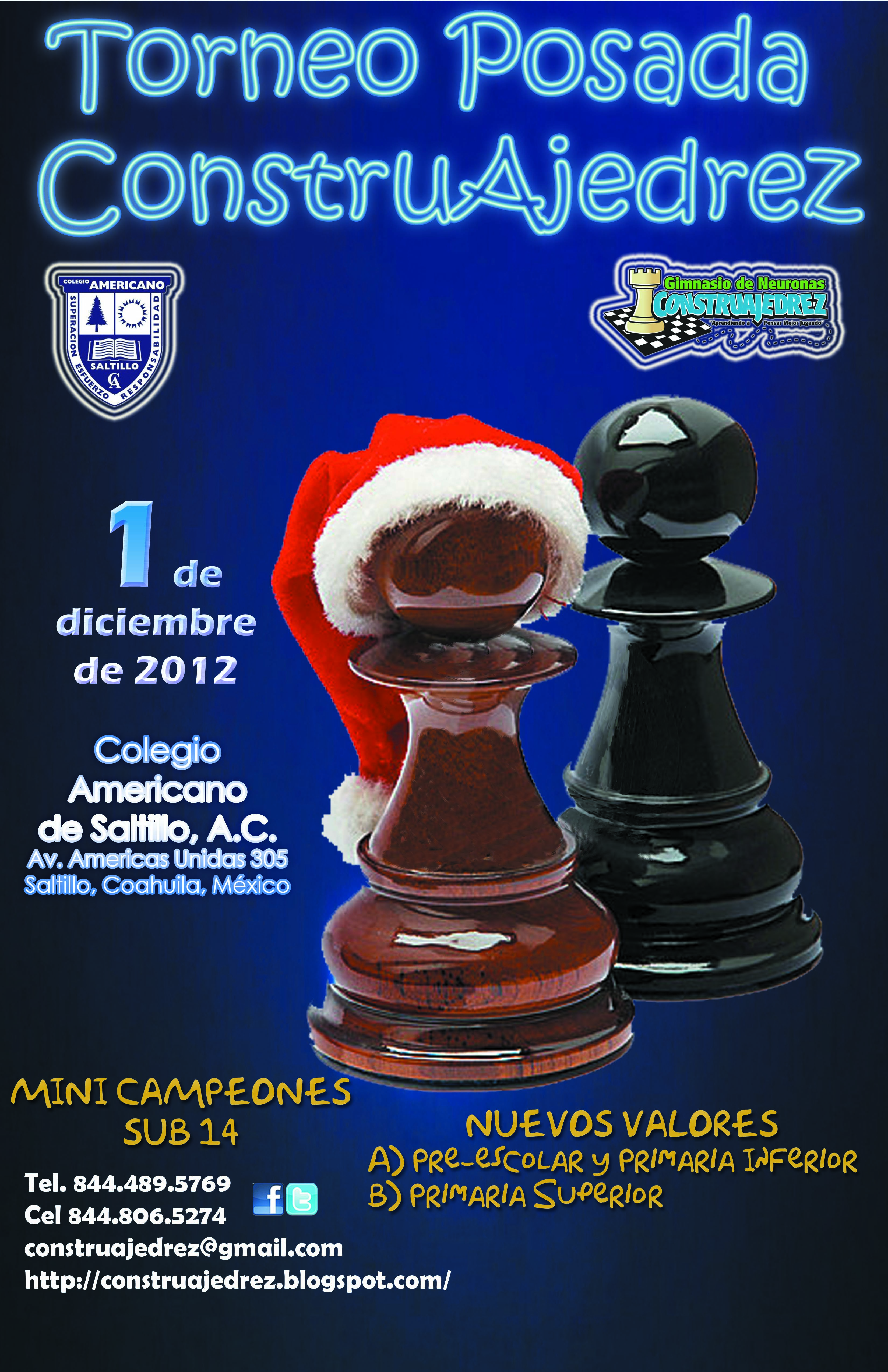 Adjuntamos convocatoria del torneo de ajedrez infantil para niños de hasta 14 años de edad, que realizaremos este sábado 1 de Diciembre en el Colegio Americano.